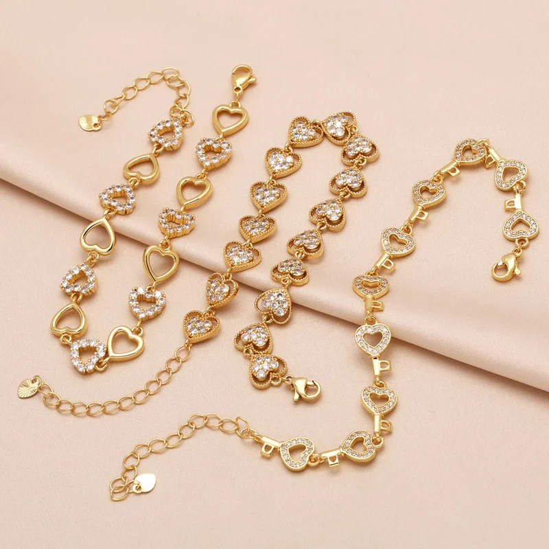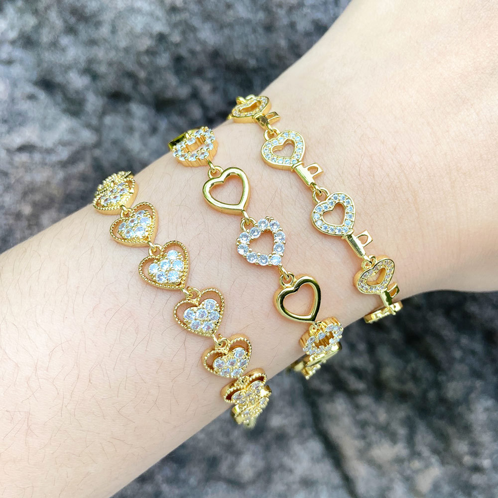 como joias mais vendidas pulseira de coração de pêssego amor feminina banhada a ouro zircônia joias de mão pulseira bre52