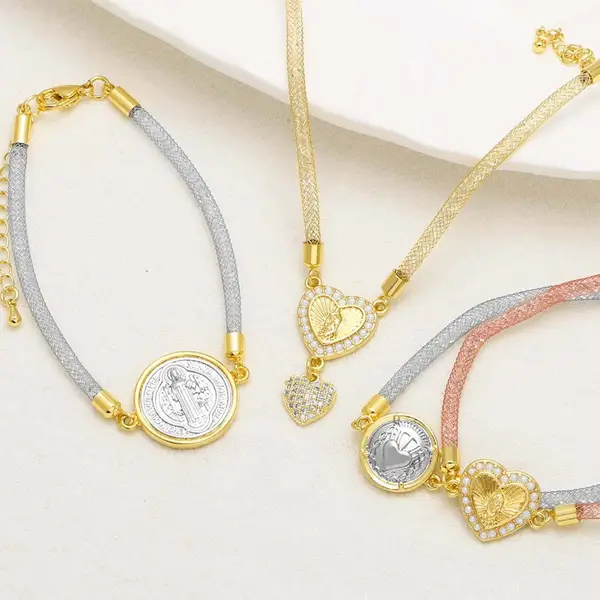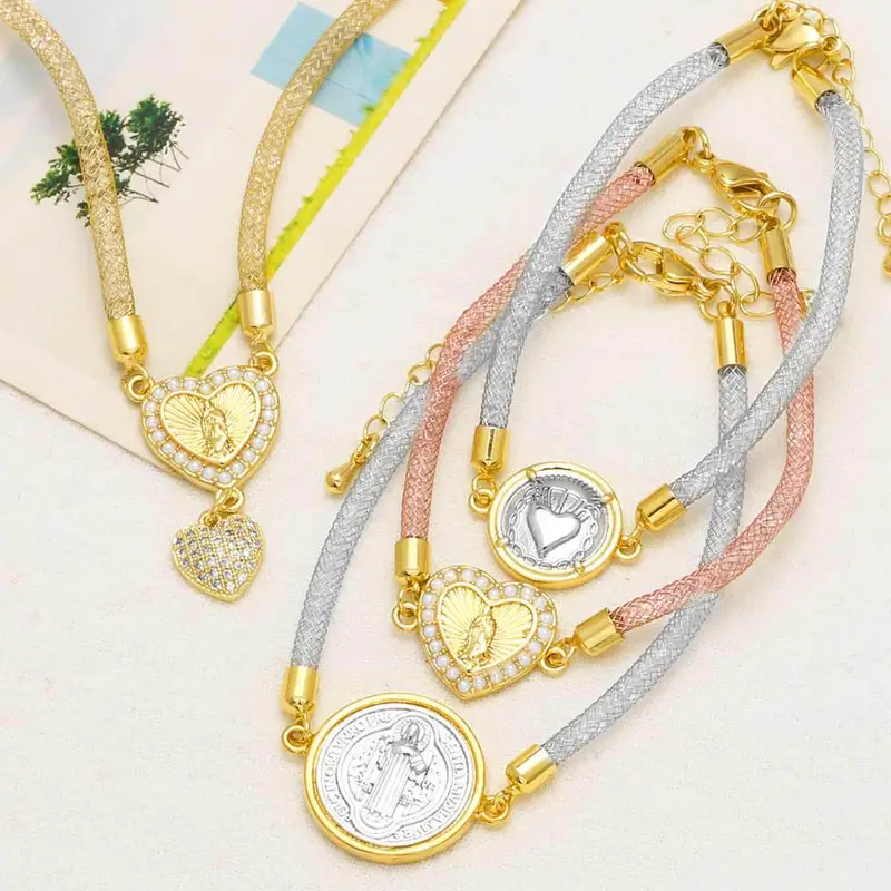 como joias mais vendidas pulseira de coração de pêssego amor virgem maria banhada a cobre joias de mão de ouro 18k brj30