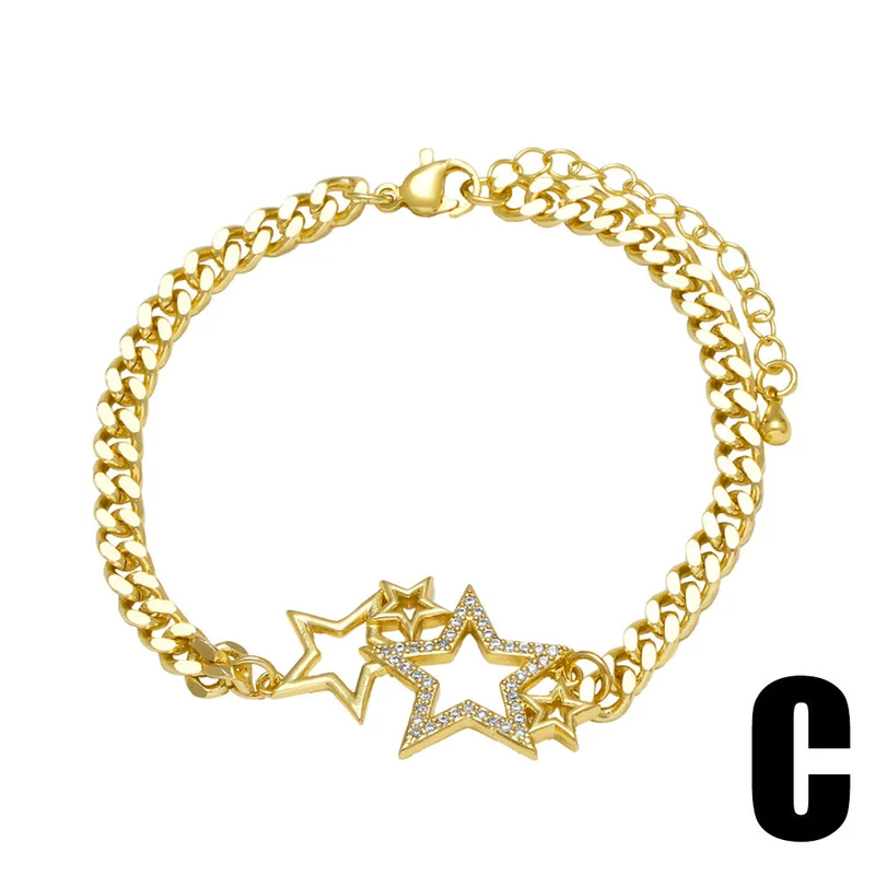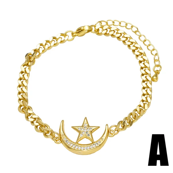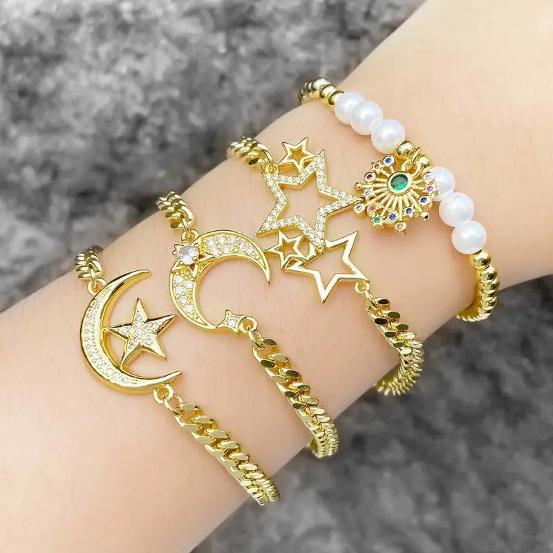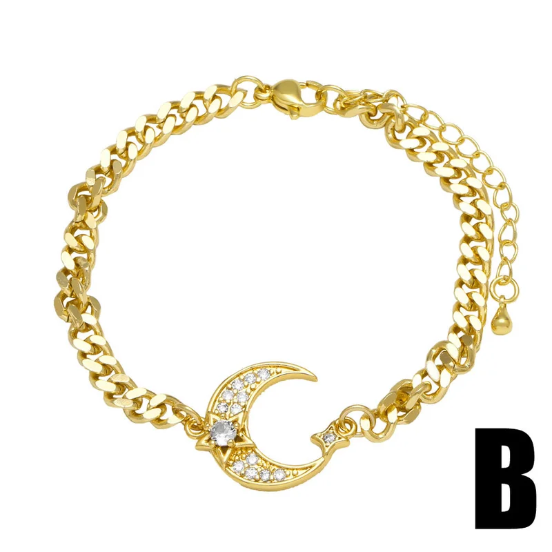 como joias mais vendidas pulseira pingente de estrela e lua banhada a ouro zircônia acessórios pulseira bra13