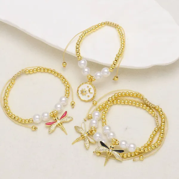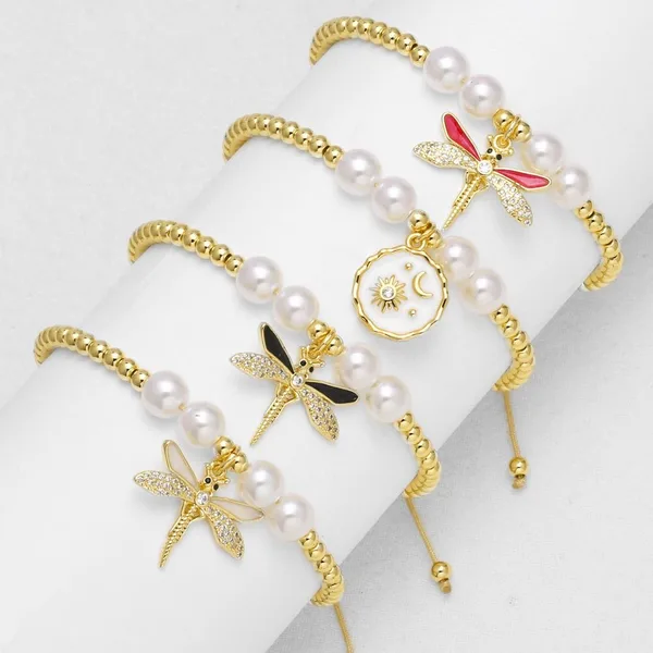 como joias nova pulseira com pingente de libélula de pérola banhada a ouro pulseira de gota de óleo pulseira brc15
