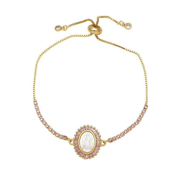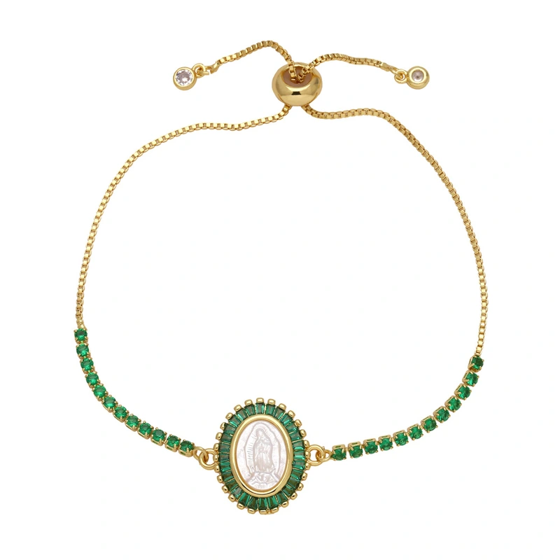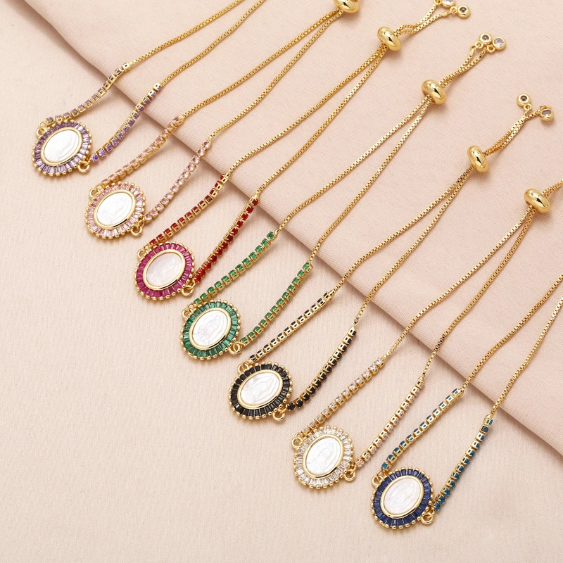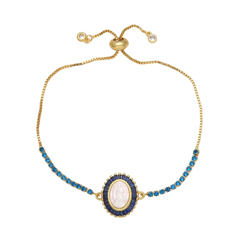 como joias nova pulseira virgem maria feminina banhada a cobre ouro verdadeiro incrustado zircônia colorida joias de mão bre25