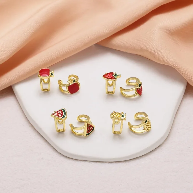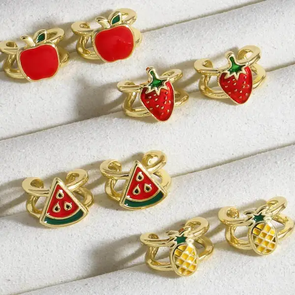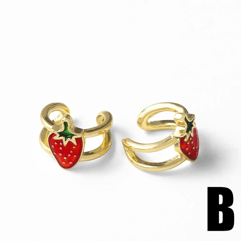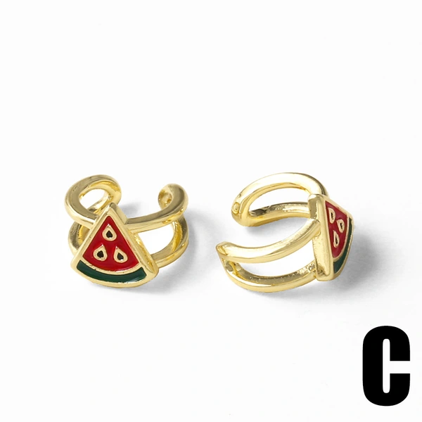 como joias novas banhadas a cobre 18k ouro óleo gota fruta melancia morango orelha osso clipe brinco brincos era028