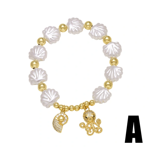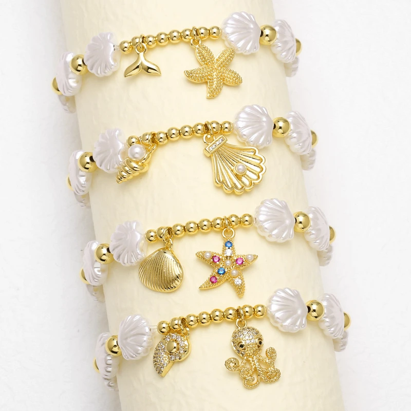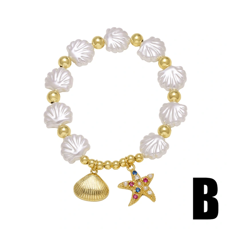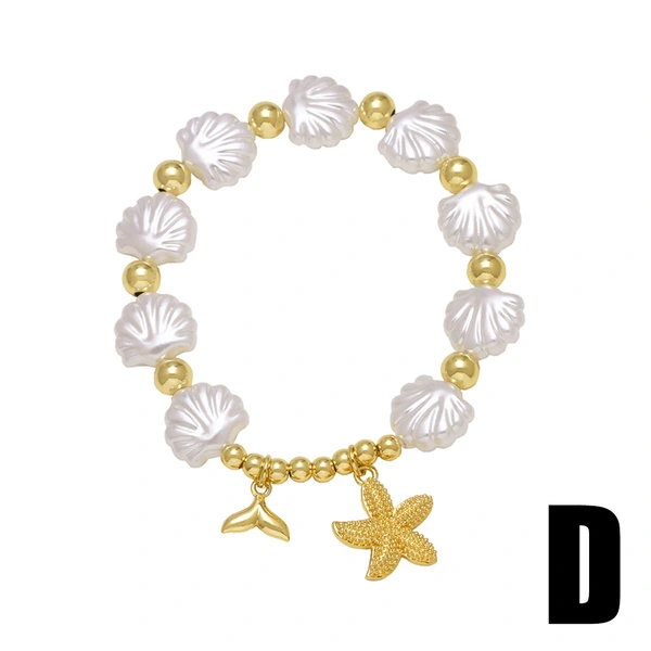 como joias novas contas concha estrela do mar oceano estilo pulseira banhada a ouro joias de mão pulseira brf22