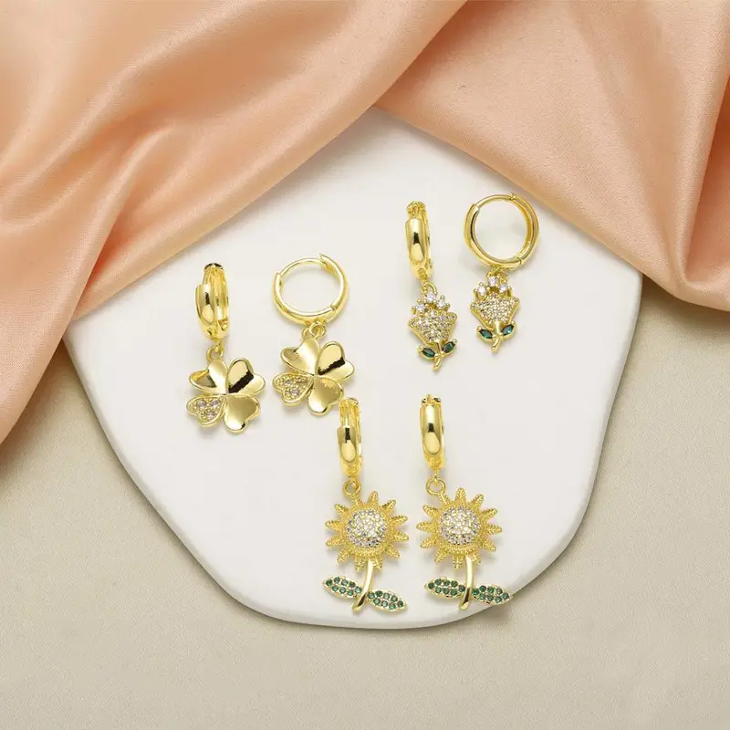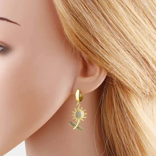 como joias novas de alta qualidade banhadas a cobre 18k ouro flor girassol brincos brincos brincos femininos erw40