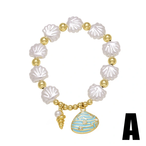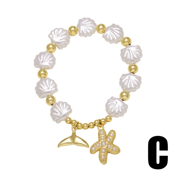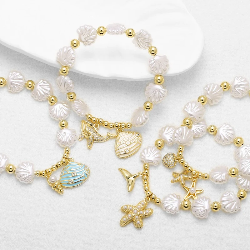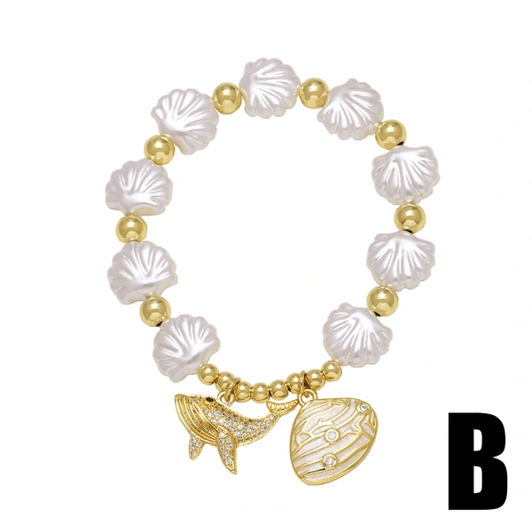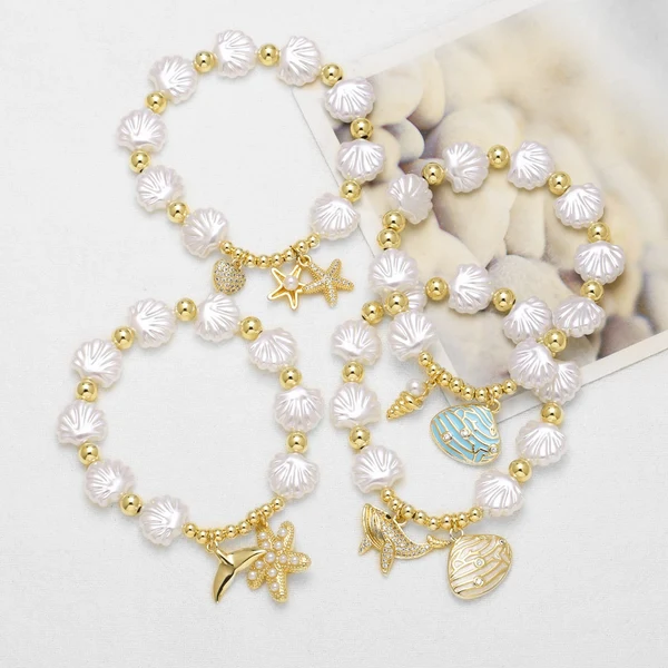 como joias novas estilo europeu e americano oceano pérola concha estrela do mar baleia pulseira banhada a ouro pulseira brf06