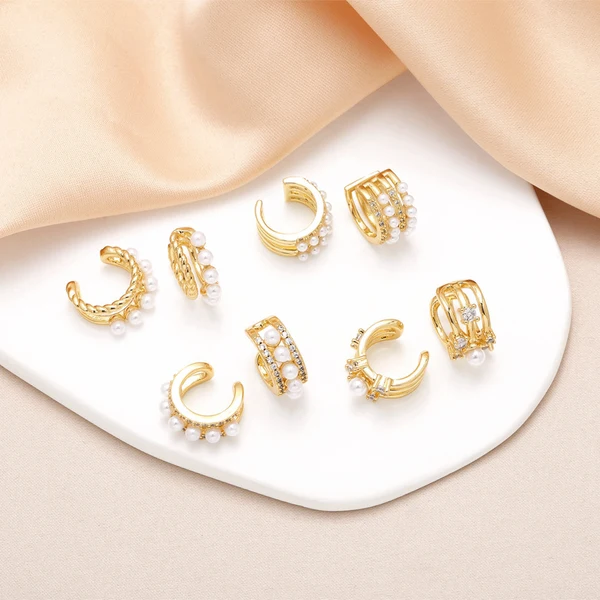 como joias novas mais vendidas brincos de pérola em forma de C brincos de osso de orelha banhados a ouro brincos de zircônia dupla era373