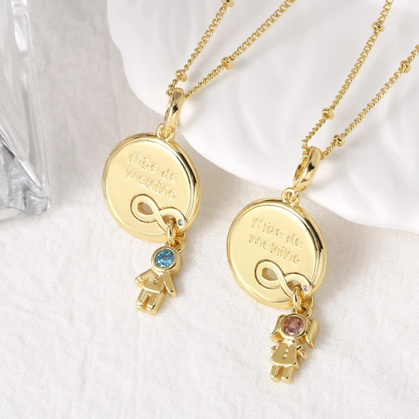 como joias novo cobre banhado 18k ouro zircão menino menina pingente colar casal clavícula corrente nka022
