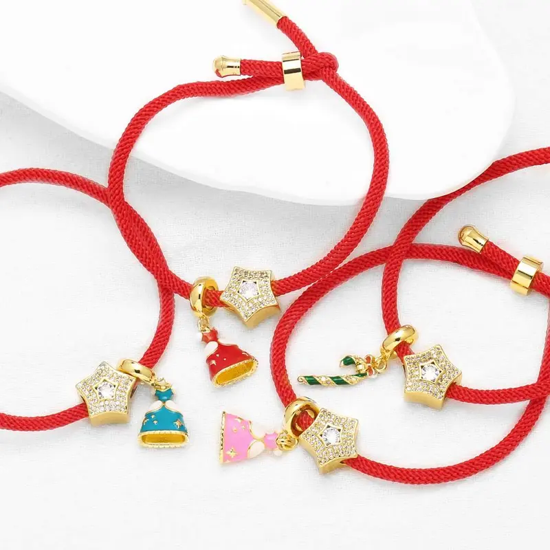 como joias pingente de estrela de cinco pontas pulseira banhada a óleo zircônia dourada corda vermelha joias de mão brm77
