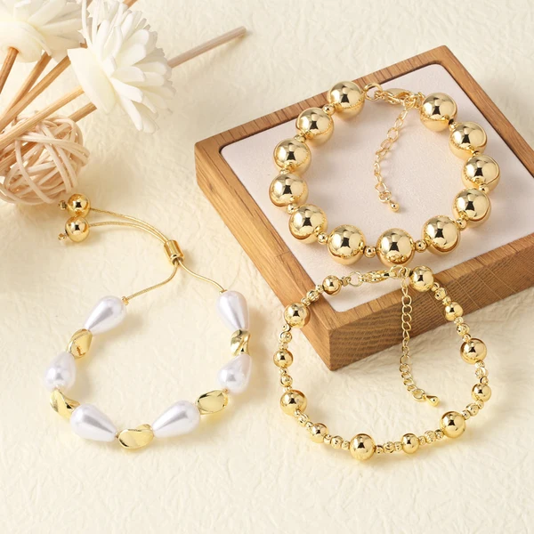 como joias pulseira de pérolas pulseira banhada a cobre ouro 18k joias de mão de alta qualidade contas brk44
