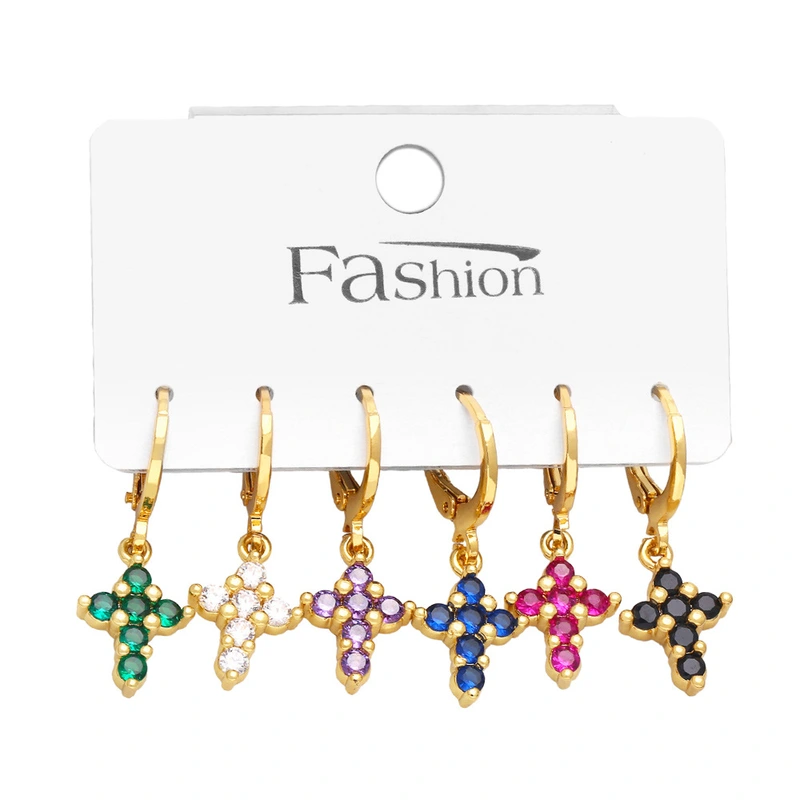 Conjunto de brincos de seis peças em cruz, liquidação, promoção, brincos europeus e americanos com microincrustações de zircônia colorida era155