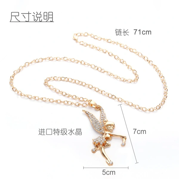 Corrente de suéter feminina outono e inverno, colar europeu e americano, colar de fada e anjo, pingente feminino, joias para atacado nkj36