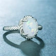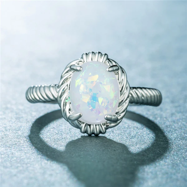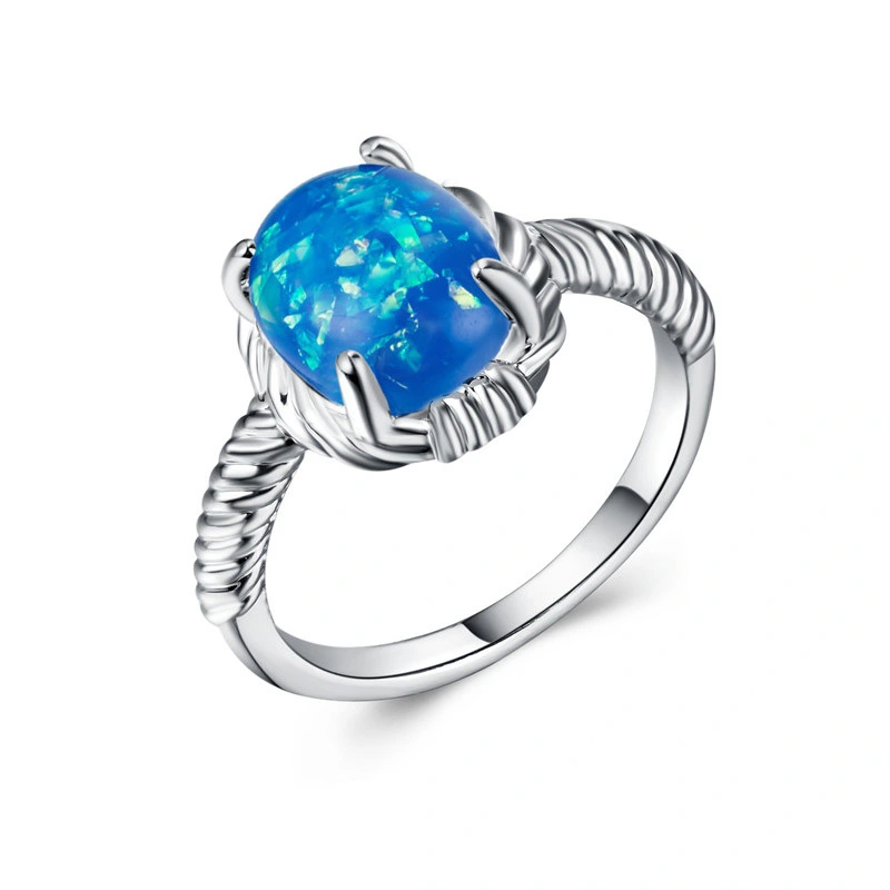 Fábrica de joias fornecimento direto anel de opala de ovo de pombo simples e versátil joia banhada a prata com gema de opala artificial
