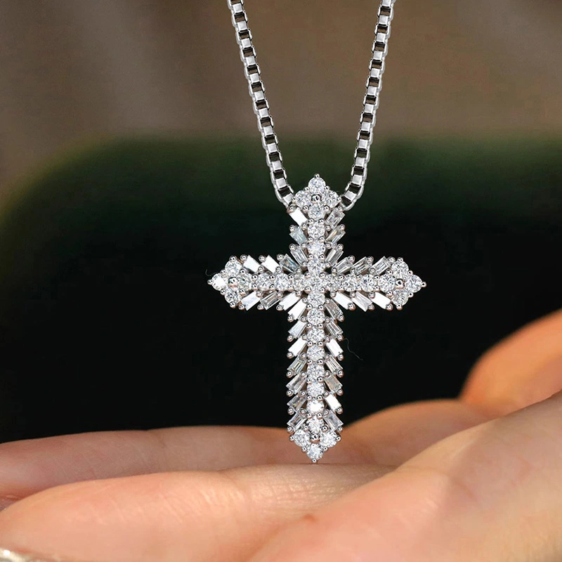 Colar de temperamento leve de luxo europeu e americano, design exclusivo, quatro garras, novo estilo, pendente, princesa, colar quadrado gordo de diamantes