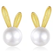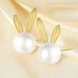 Fabricantes por atacado brincos de coelho fofos para mulheres imitação de pérolas design de orelha longa jóias populares