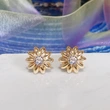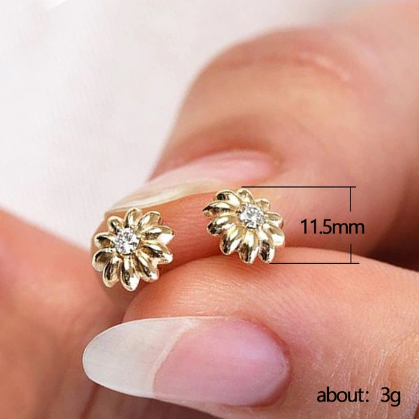 brincos japoneses e coreanos em forma de coração, brincos microincrustados de girassol e girassol bicolor, brincos elegantes de design oco