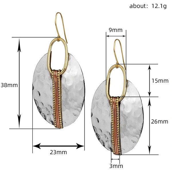Brincos grandes em formato de C retro europeus e americanos, brincos de flores com ramos de metal, temperamento retro, orelha de bordo bicolor