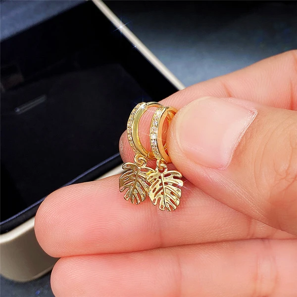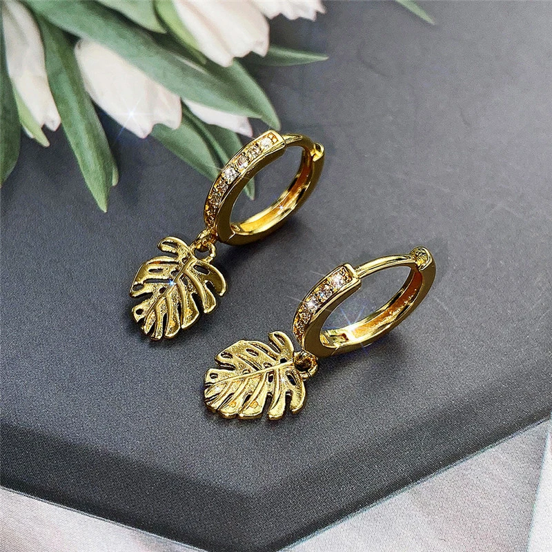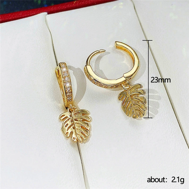 Fornecemos exclusivamente brincos de folha de tartaruga banhados a ouro e cobre para mulheres, brincos criativos de folhas da moda europeia e americana