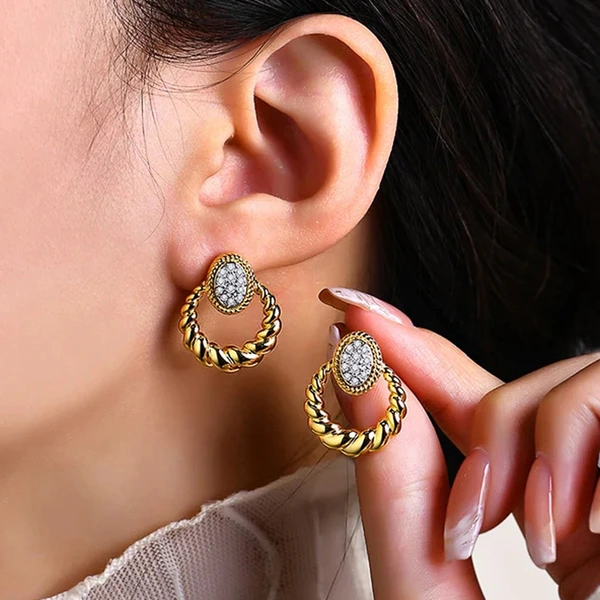 Brincos coreanos elegantes de temperamento antigo, misture e combine brincos ovais com microincrustações de zircónias brilhantes, vendas diretas da fábrica
