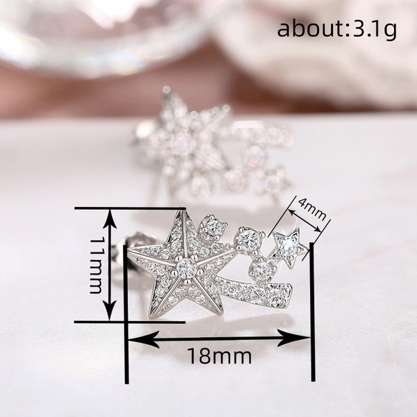 Joias coreanas em forma de estrela mais vendidas, brincos doces brilhantes e populares, joias leves de luxo e alta costura