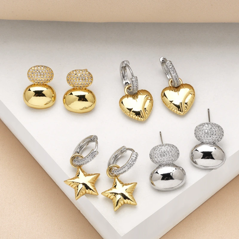 Joias de e-commerce mais vendidas: brincos com pingente de coração, brincos de estrela de cinco pontas banhados a cobre com incrustações de ouro genuíno, ery05