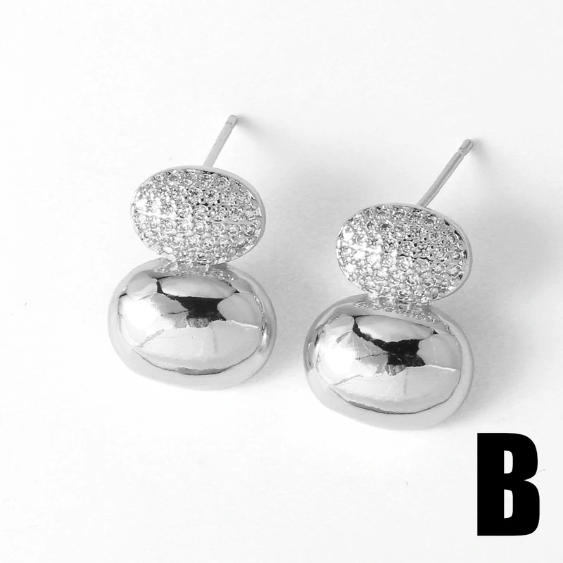 Brincos coreanos elegantes de temperamento antigo, misture e combine brincos ovais com microincrustações de zircónias brilhantes, vendas diretas da fábrica