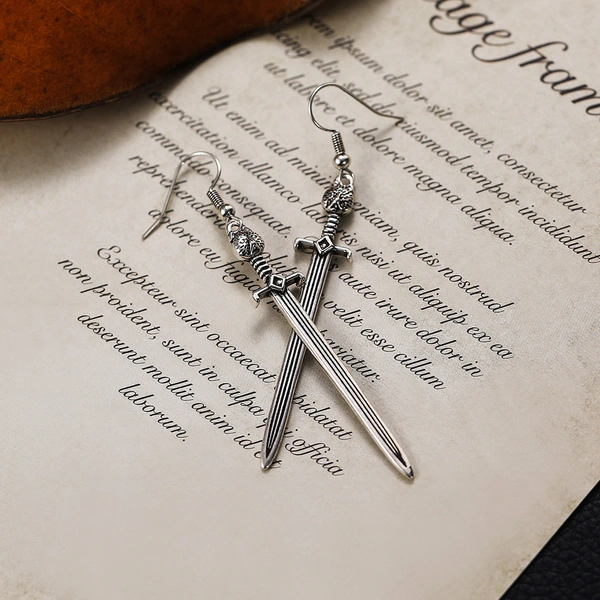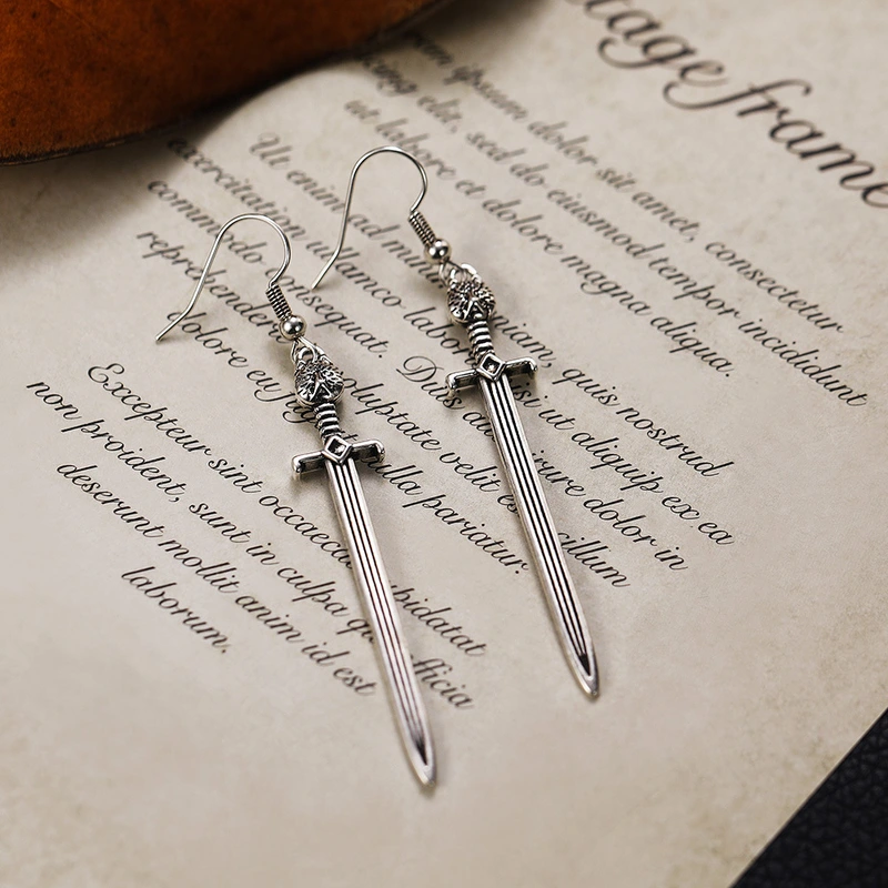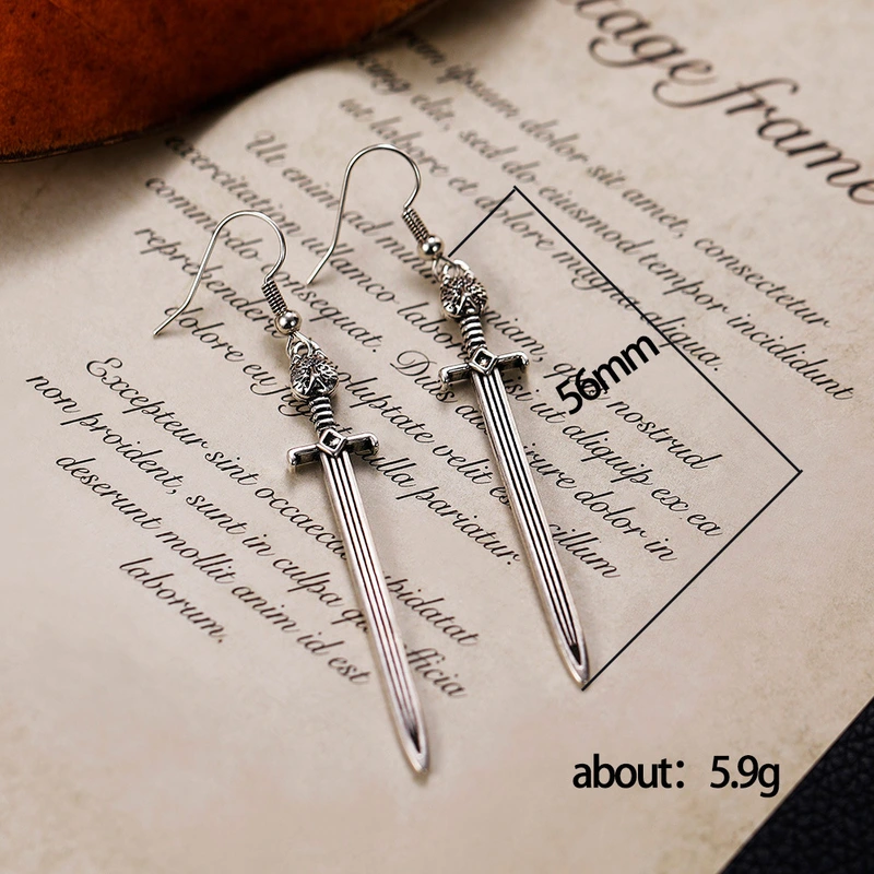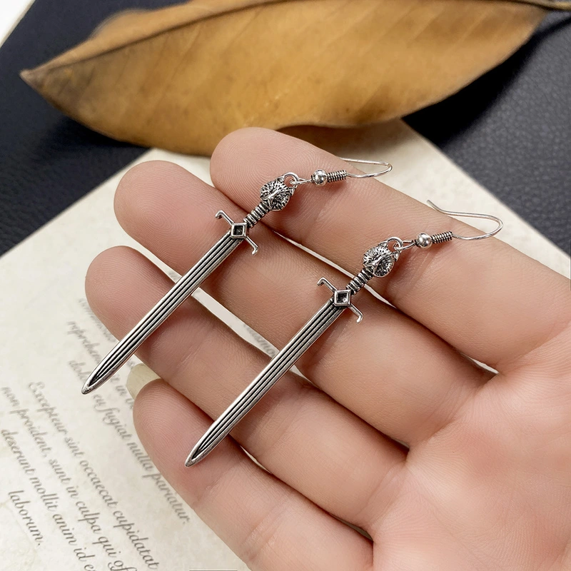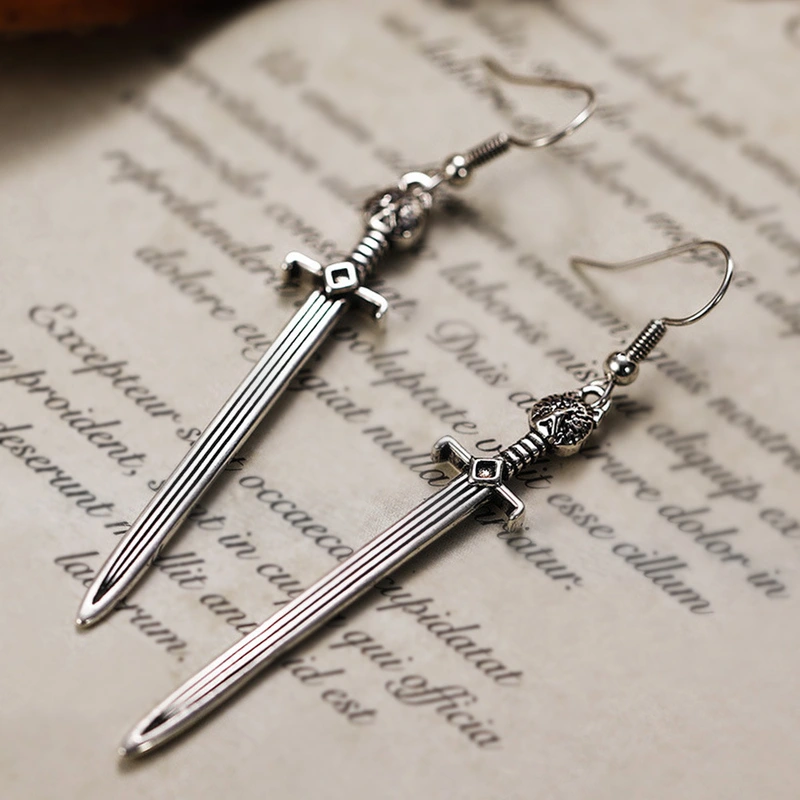 jóias europeias e americanas brincos de espada longa gótica medieval europeia brincos de espada de arma criativa com cabeça de gato