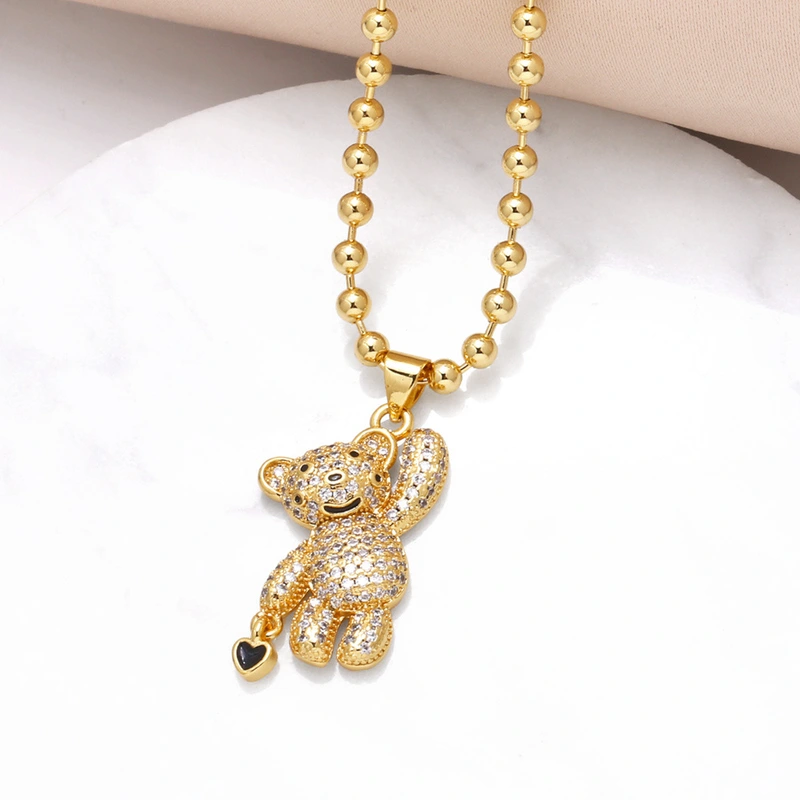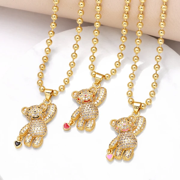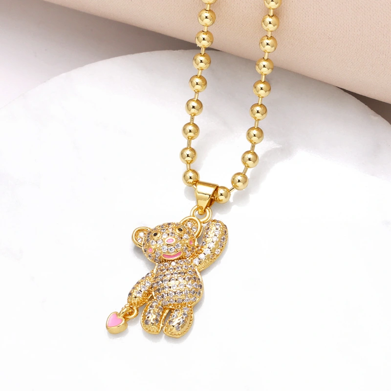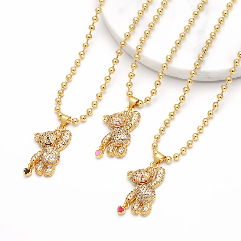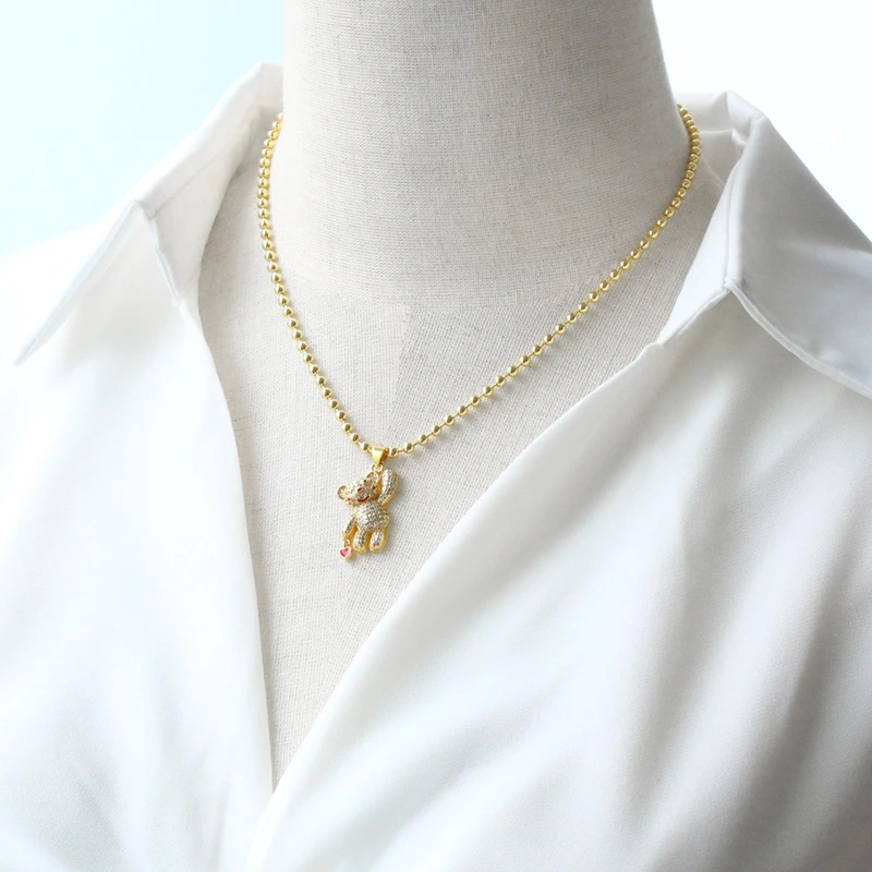 liquidação como joia venda quente colar de urso de mão banhado a ouro zircônia corrente de clavícula nkt30