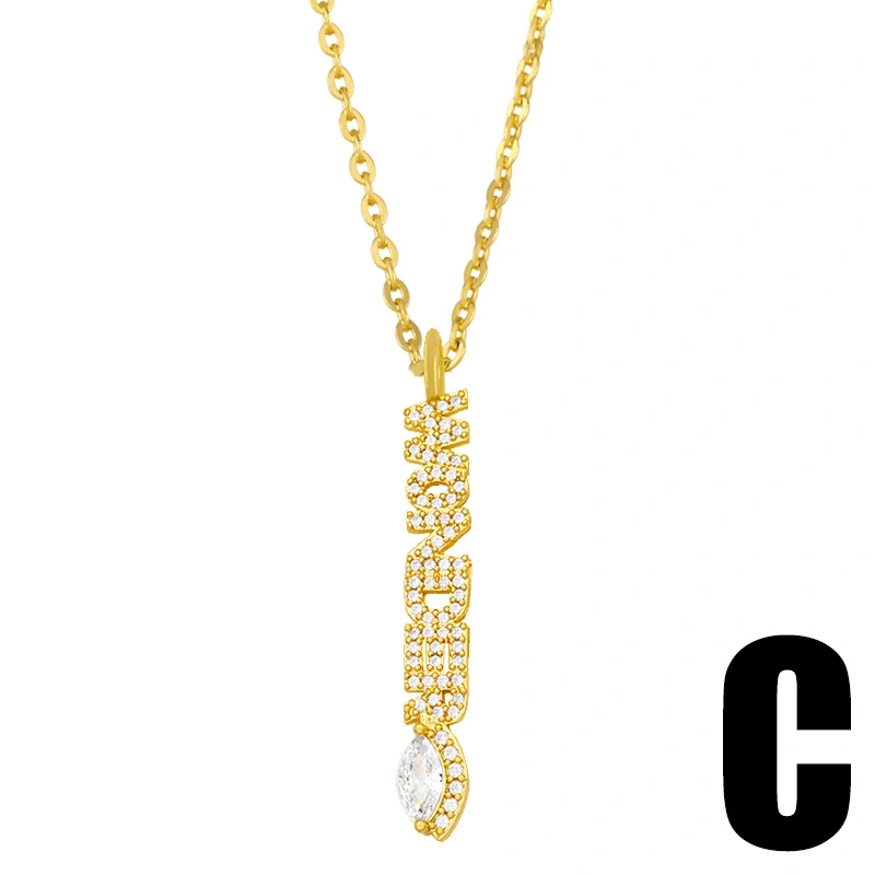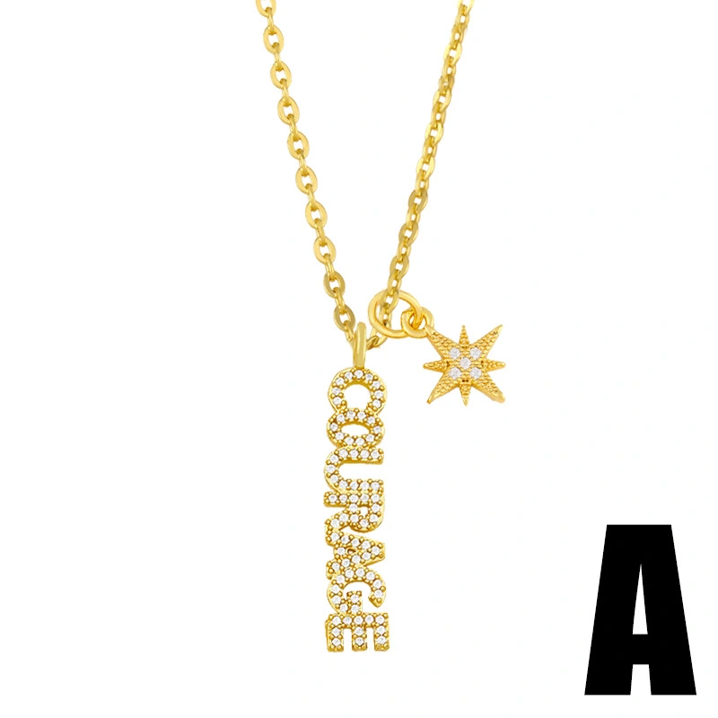 liquidação coragem europeia e americana colar de letras coragem zircônia corrente clavícula presente de aniversário nkv45