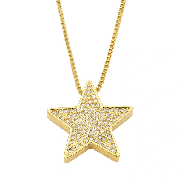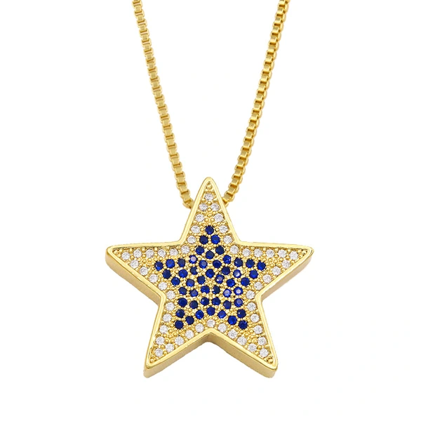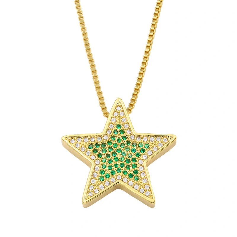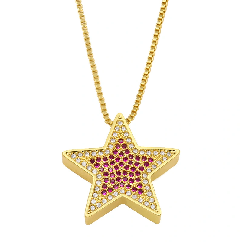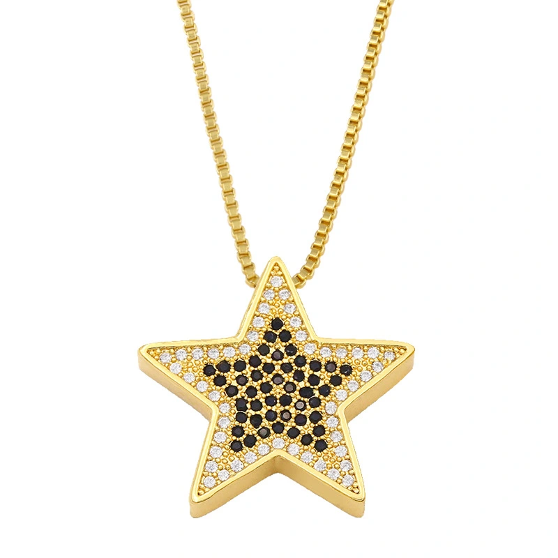 liquidação de joias europeias e americanas colar com pingente simples de zircônia microincrustada pingente estrela corrente curta para suéter nkt08