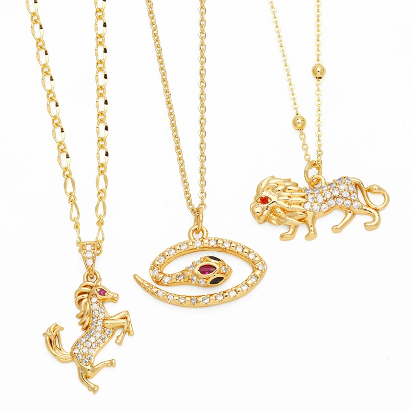 liquidação de joias europeias e americanas colar criativo de pônei e leão pingente animal da moda corrente de clavícula nku34
