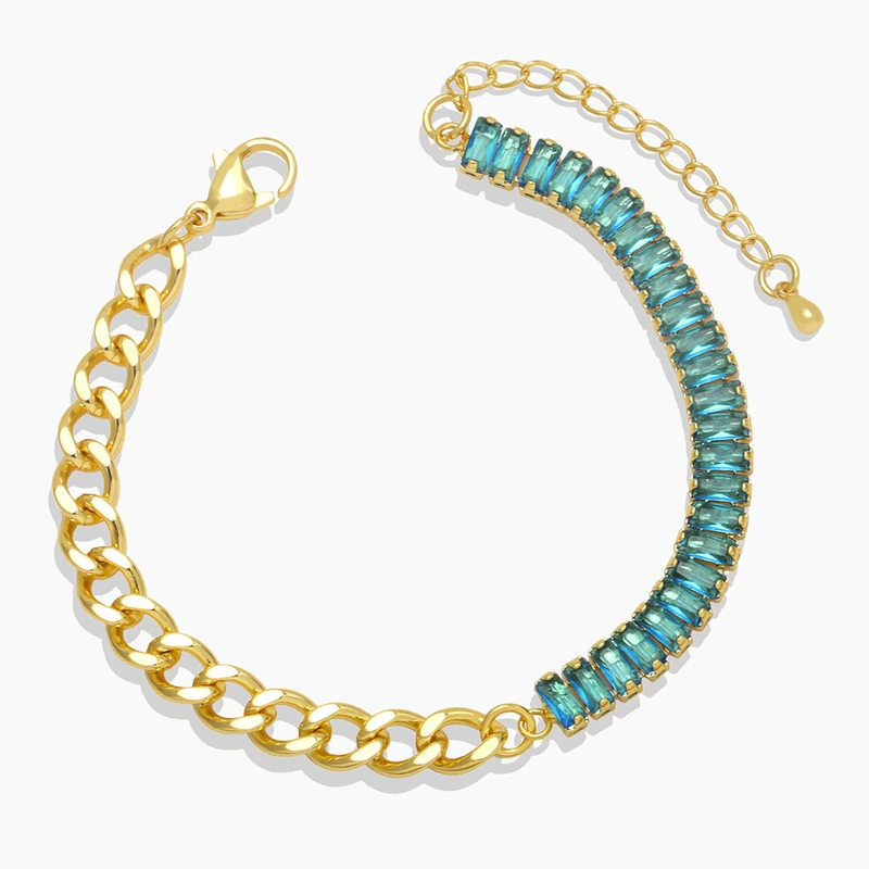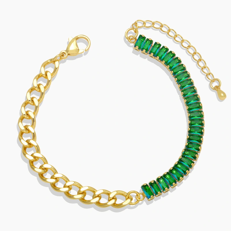 Liquidação de joias hip-hop estilo retrô europeu e americano, design moderno, corrente cubana, pulseira de zircônia feminina brf89