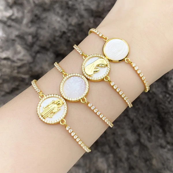 Liquidação de joias populares europeias e americanas pulseira simples da Virgem Maria incrustada com zircônia cúbica pulseira brb44