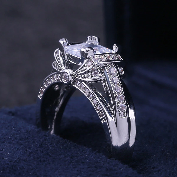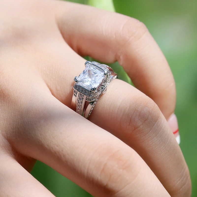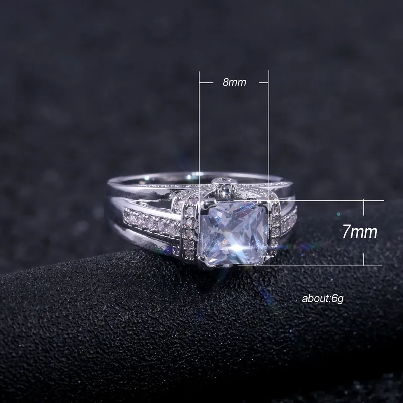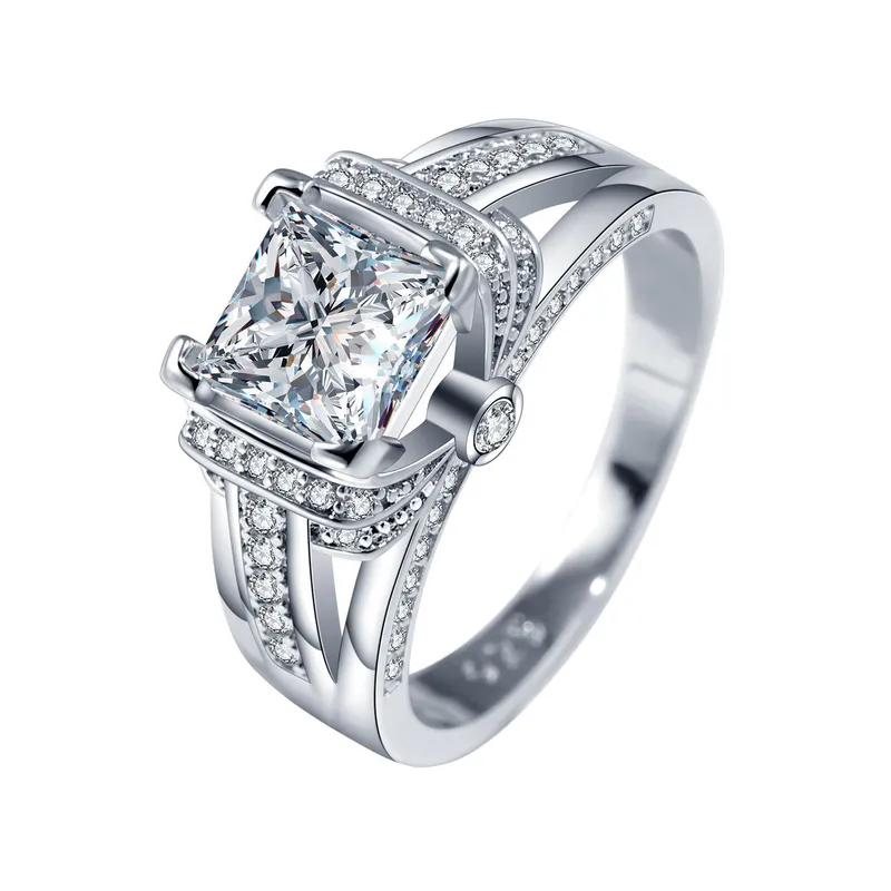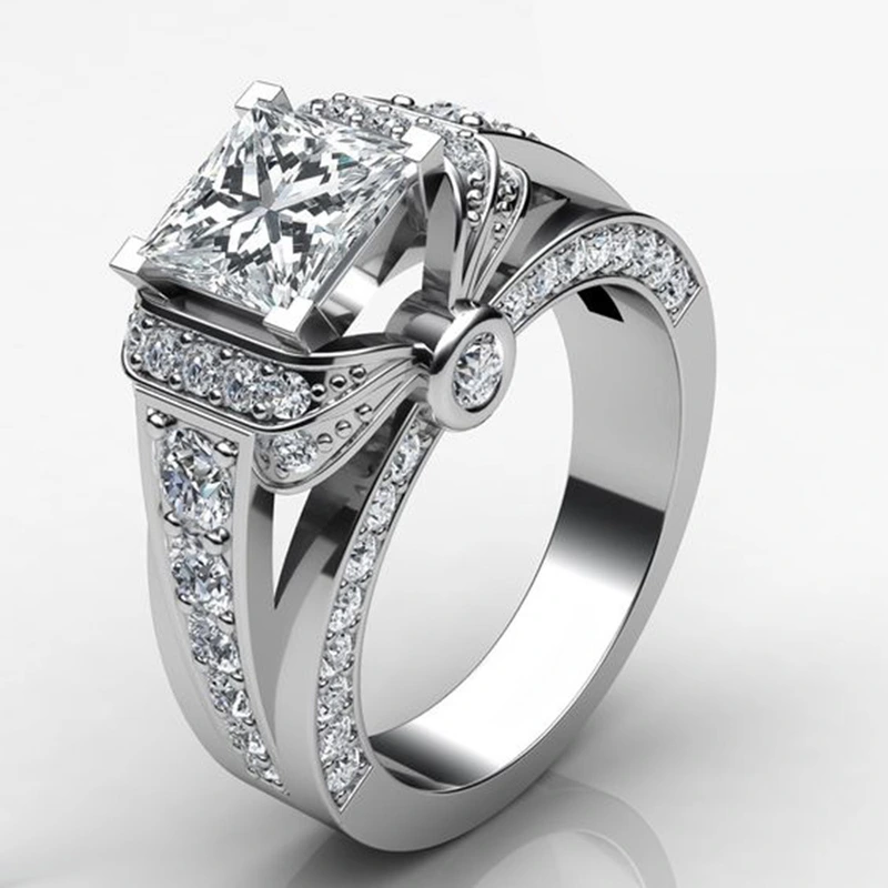 Anel quadrado de princesa novo, best-seller, estilo europeu e americano, com zircónias incrustadas, joalharia feminina, anel de noivado