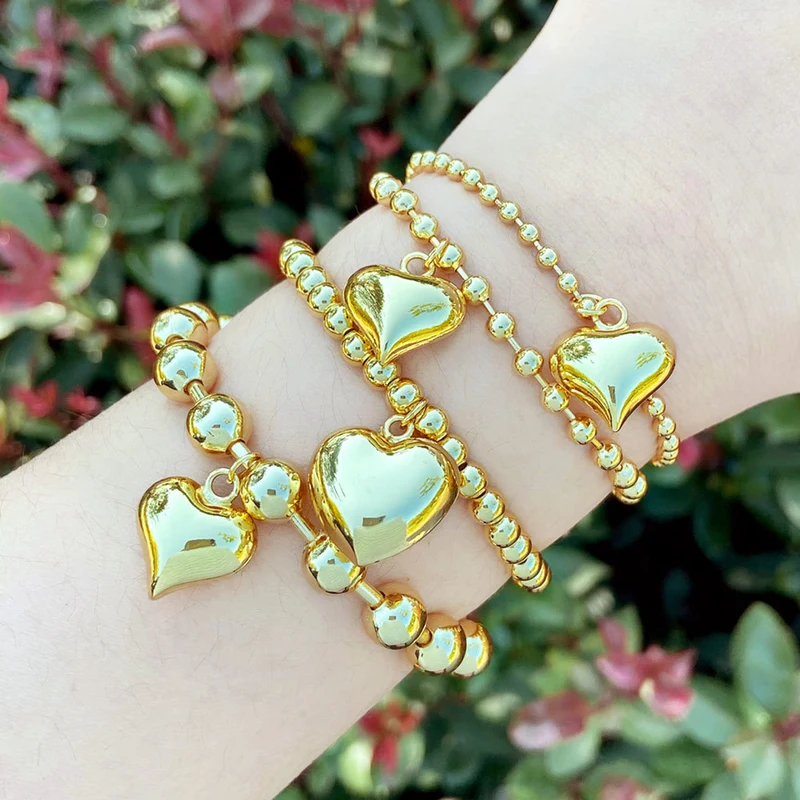 Nova pulseira de amor simples e popular, design de moda europeia e americana, banhada a cobre, ouro 18k, pulseira de contas redondas feminina brm23