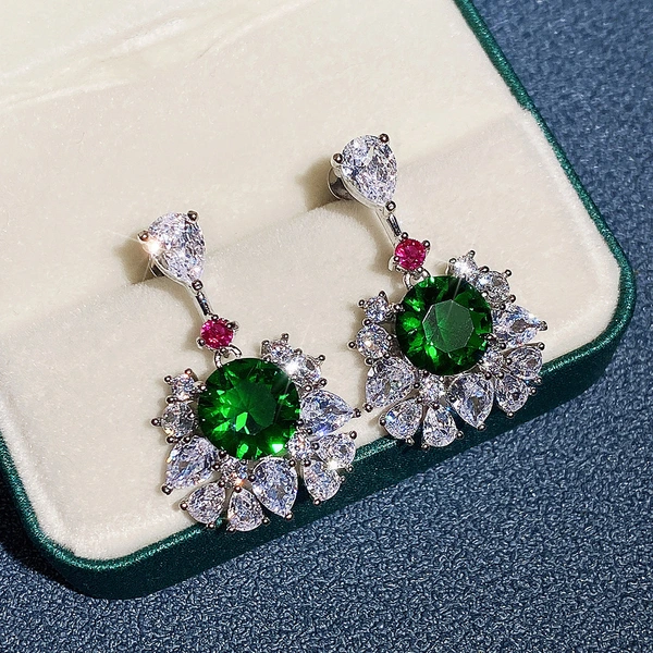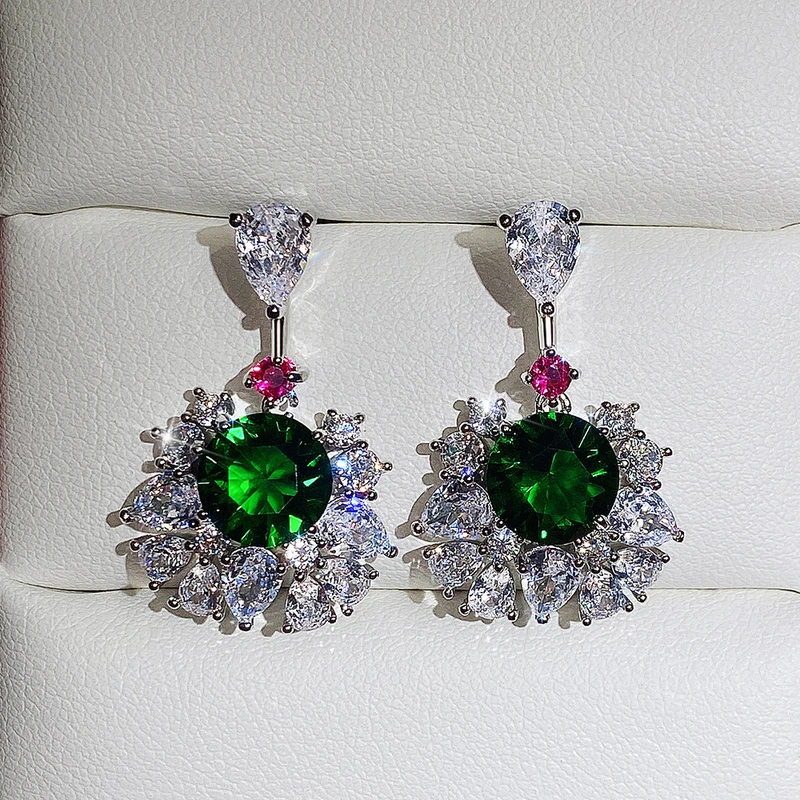 nova recomendação de produto: brincos de luxo estilo palácio de alta qualidade para mulheres incrustados com brincos de zircônia verde esmeralda