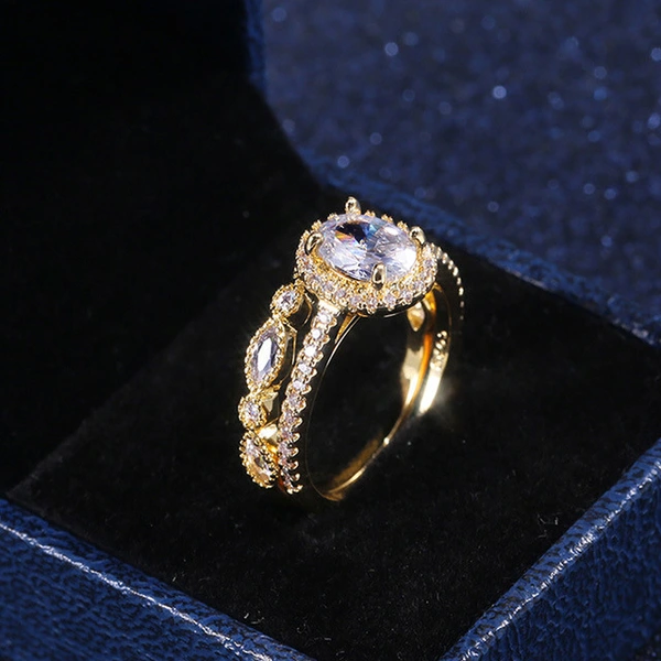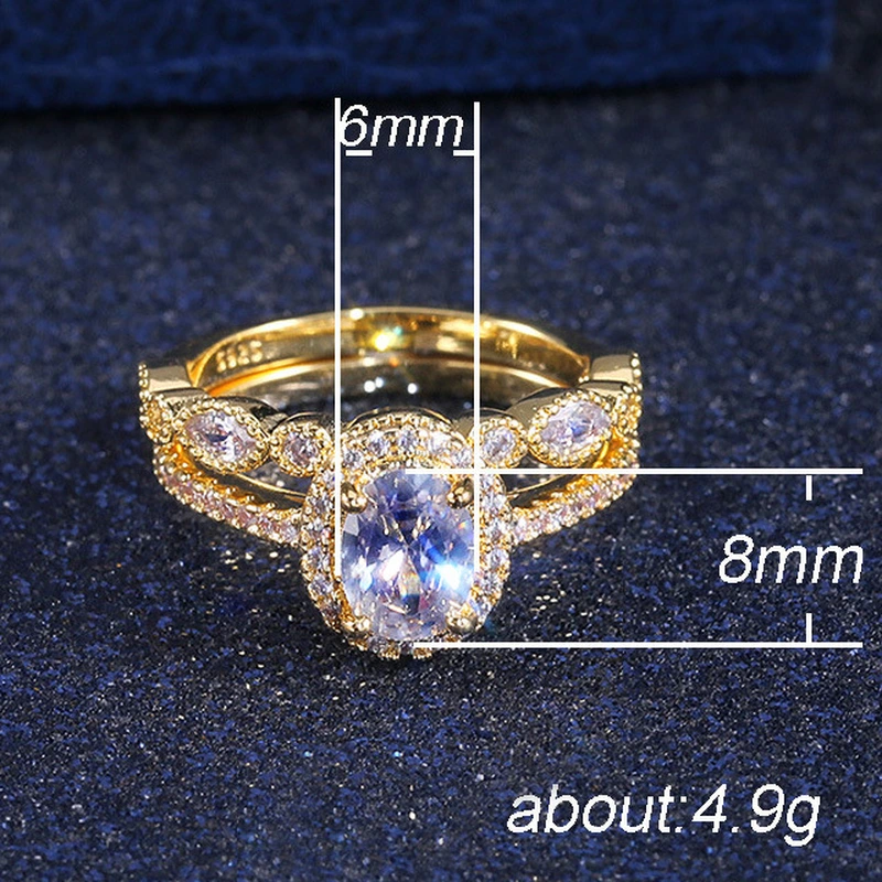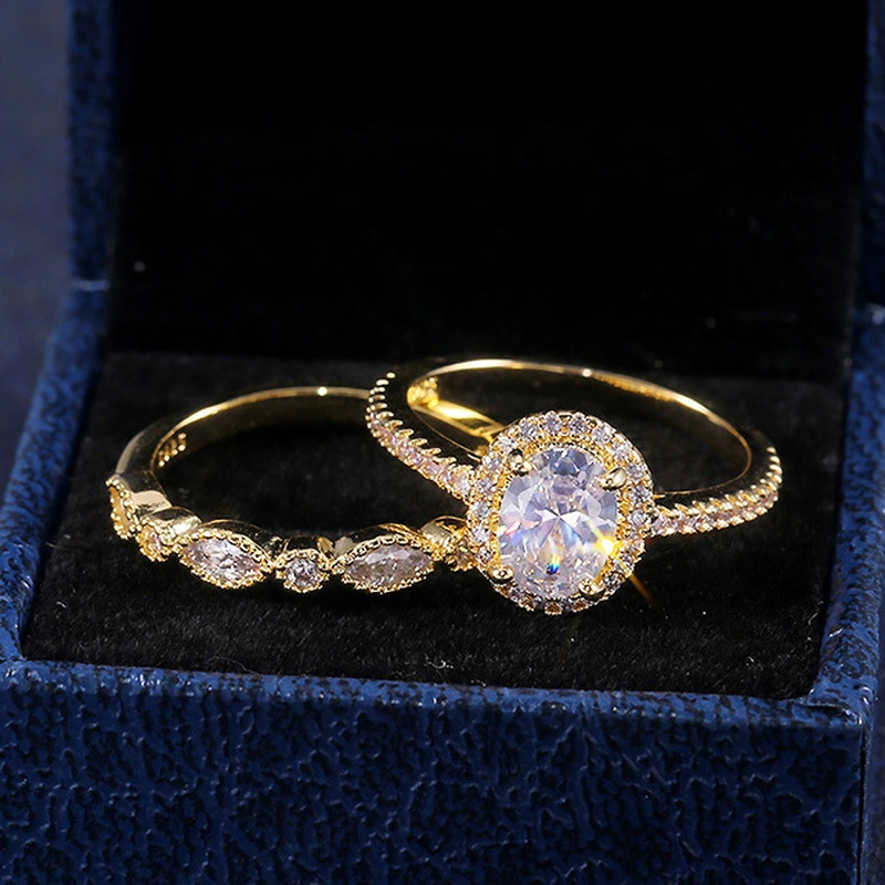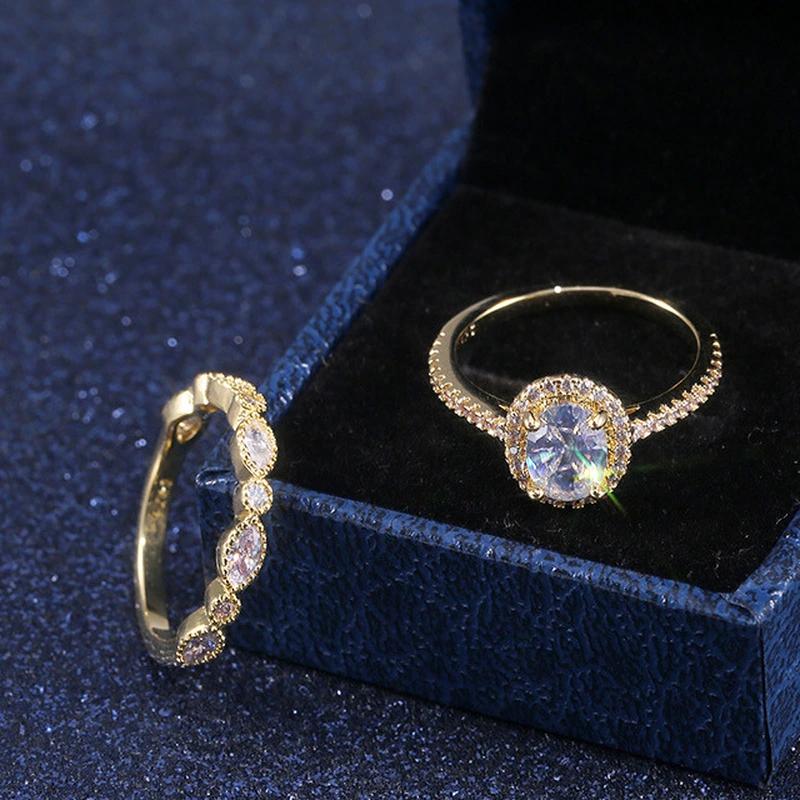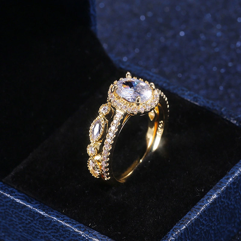 Novas jóias europeias e americanas, anéis de casamento em zircónia, cor dourada, cobre, romântico, imitação de diamante