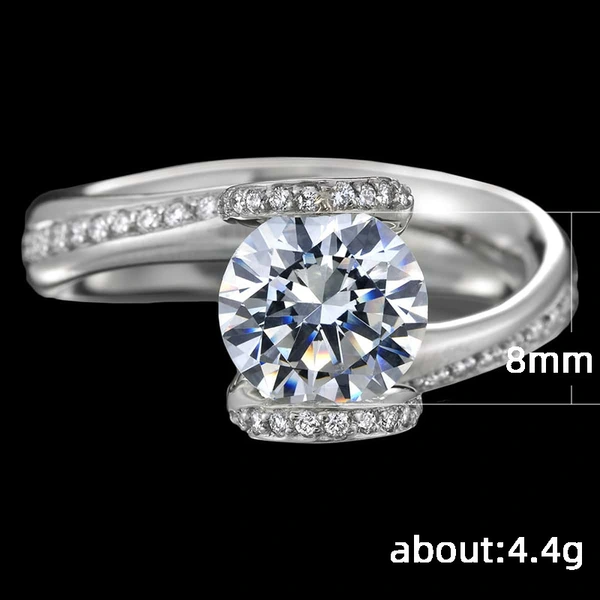 Anel de casamento clássico com seis garras de zircónia, estilo celebridade, microincrustado, leve, luxuoso, estilo europeu e americano