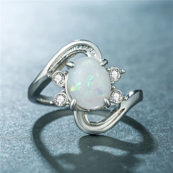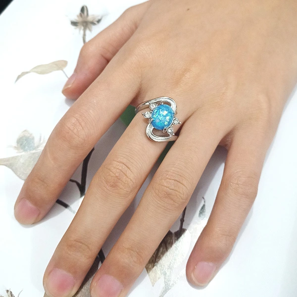 Novo anel da moda popular flor ondulada anel de opala artificial micro incrustado joias de strass atacado