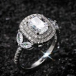 Anel quadrado de princesa novo, best-seller, estilo europeu e americano, com zircónias incrustadas, joalharia feminina, anel de noivado