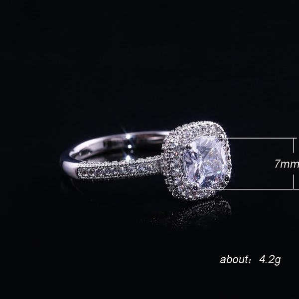 Anel quadrado de princesa novo, best-seller, estilo europeu e americano, com zircónias incrustadas, joalharia feminina, anel de noivado