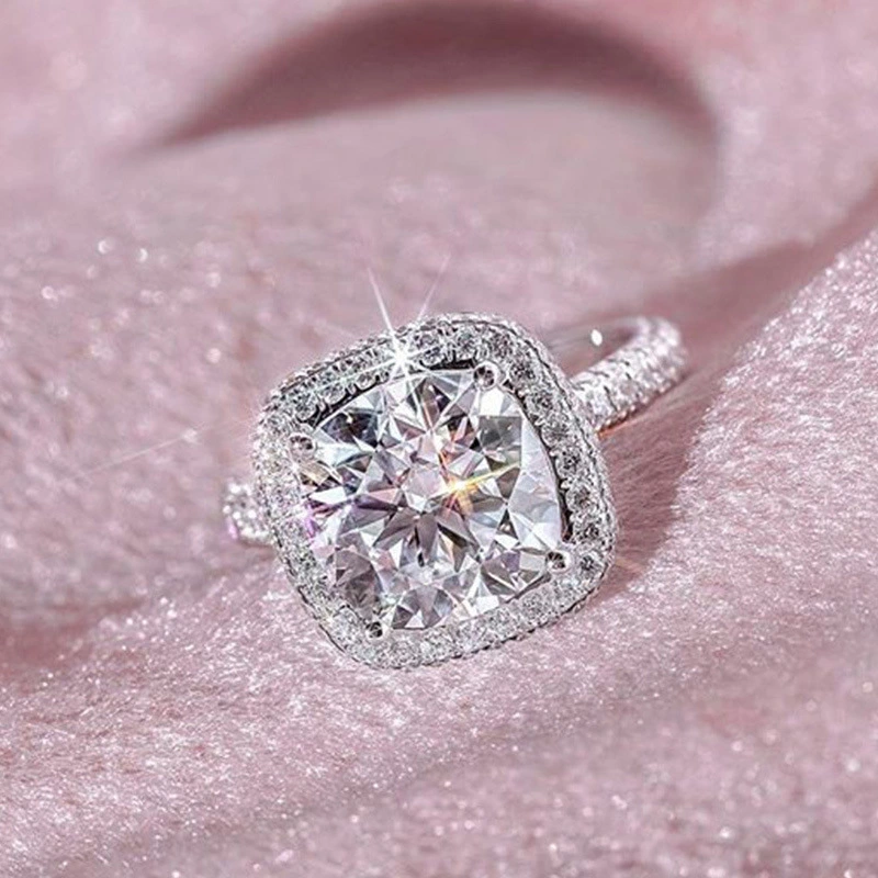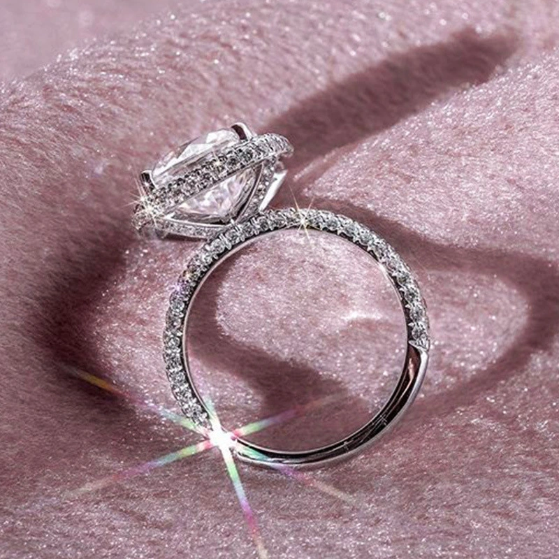 Anel de casamento clássico com seis garras de zircónia, estilo celebridade, microincrustado, leve, luxuoso, estilo europeu e americano