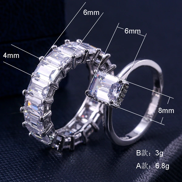 Anel quadrado de princesa novo, best-seller, estilo europeu e americano, com zircónias incrustadas, joalharia feminina, anel de noivado