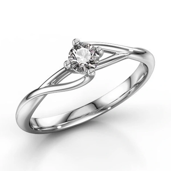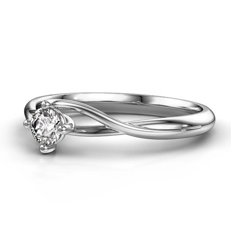 Anel clássico de quatro garras com microincrustações de zircónias sintéticas, anel de braço torcido de duas cores com fileira dupla para mulher, anel de noivado e casamento