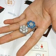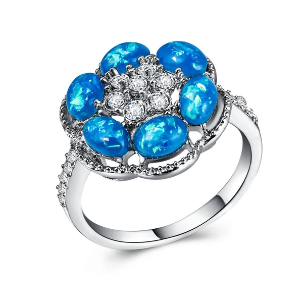 Novo anel de opala europeu e americano, personalidade da moda, anel de opala com flor hexagonal e strass microincrustado para mulheres