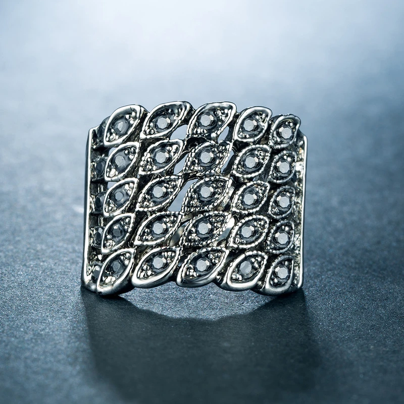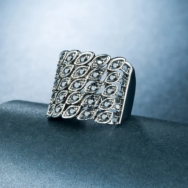 Anel de design de luxo europeu e americano, temperamento moderno, anel de zircónia olho de cavalo, design oco multicamadas, anel para dedo indicador