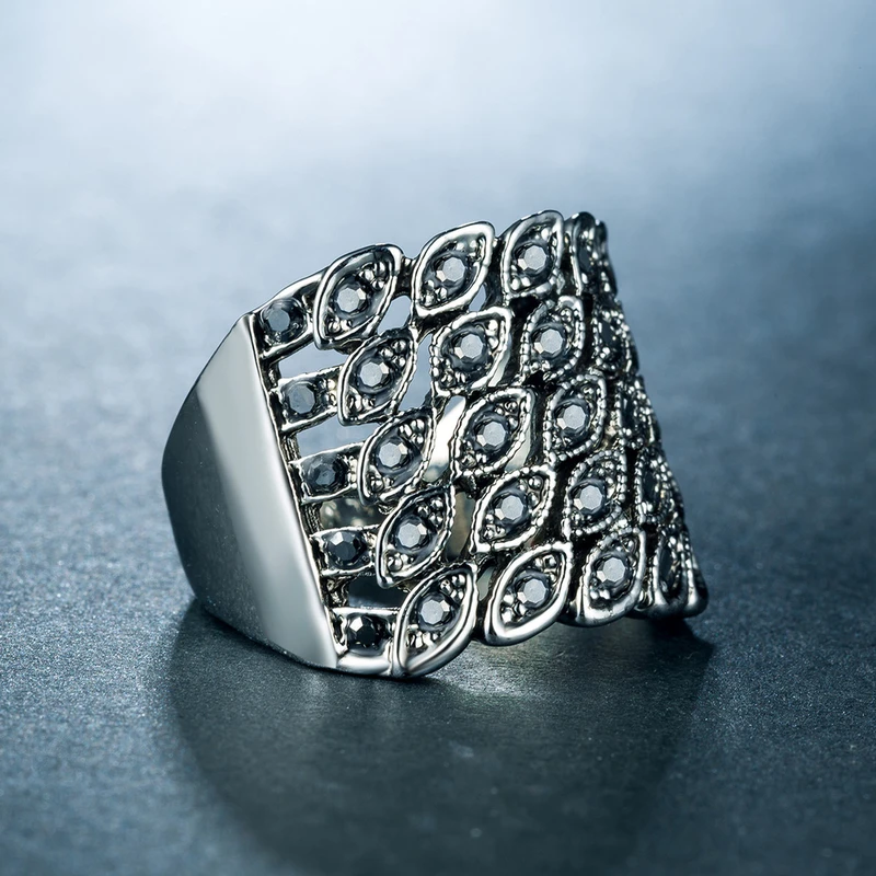 Novo anel europeu e americano exagerado feminino liga banhado a prata festa cristal jóias atacado