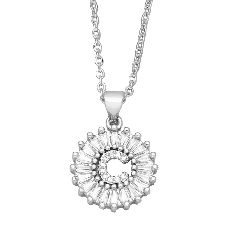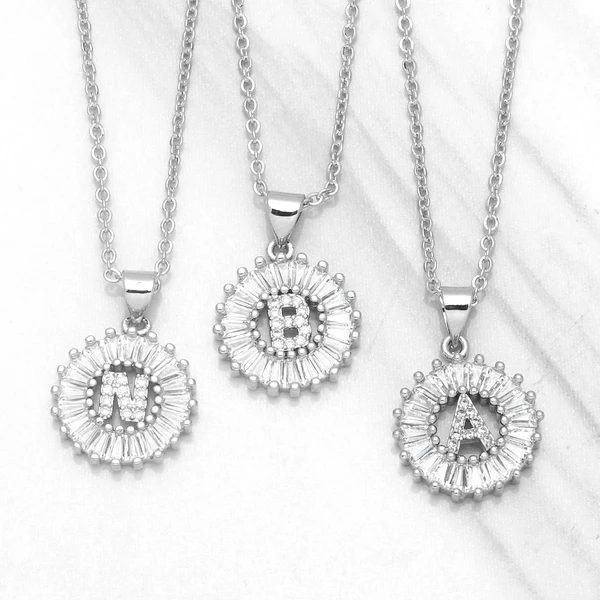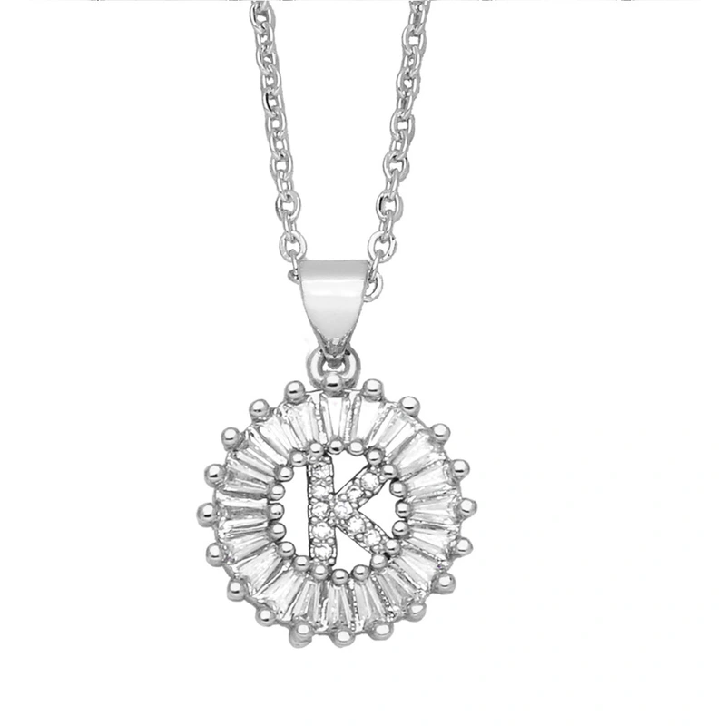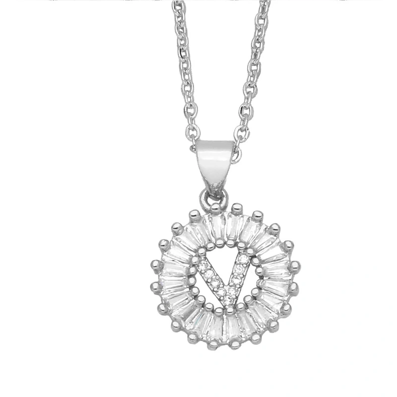 Novo colar com pingente de zircônia simples de 26 letras, estilo europeu e americano, com corrente de clavícula de diamante nkb064