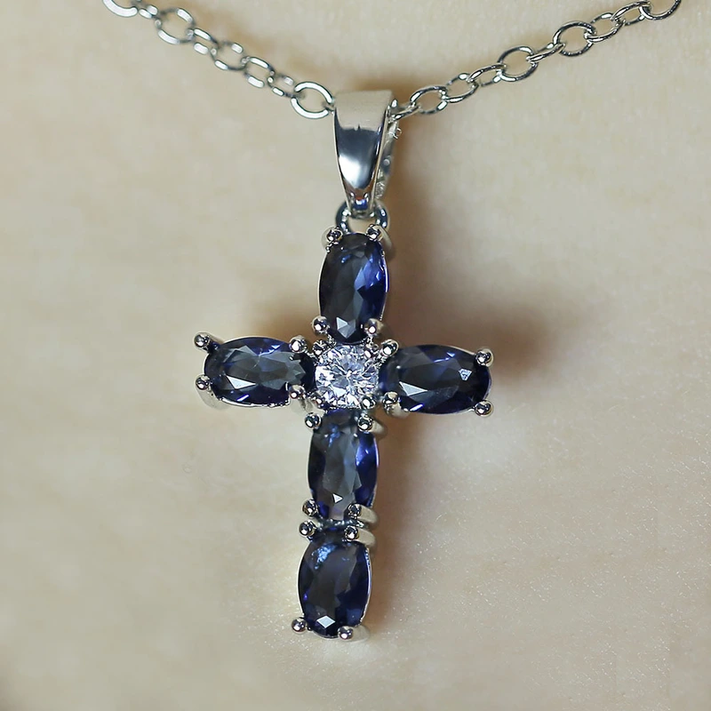 novo colar de rede vermelha, moderno e simples, com incrustações de zircônia oval azul (incluindo corrente)