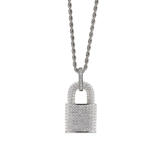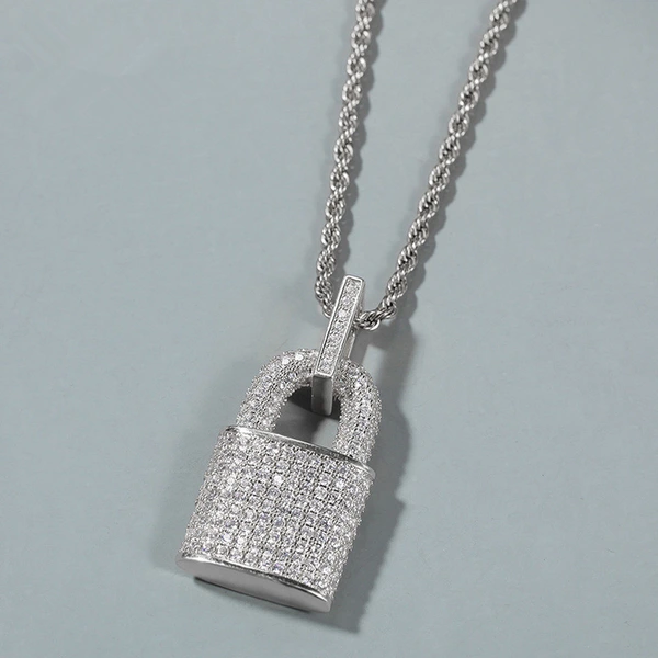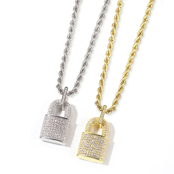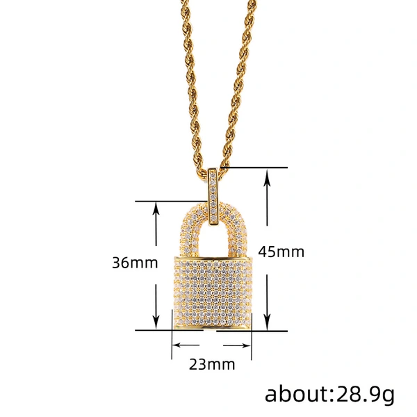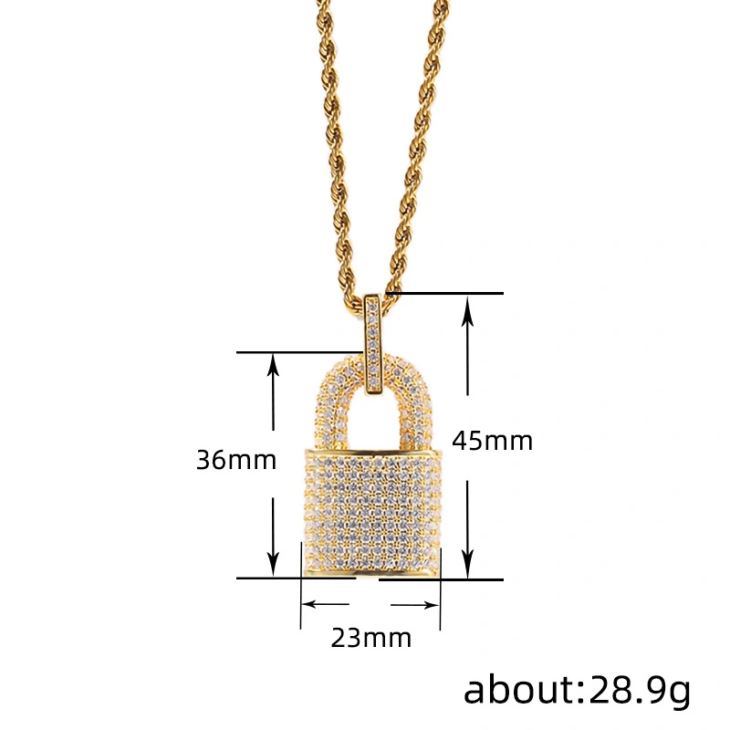 Novo colar exagerado com zircónias e pendente de personalidade para homens e mulheres, estilo hip-hop, com enfeites de cadeado europeus e americanos