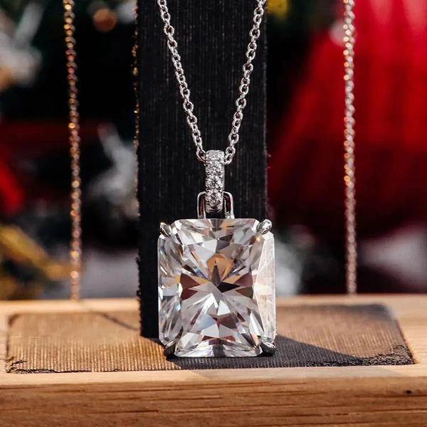 Colar de temperamento leve de luxo europeu e americano, design exclusivo, quatro garras, novo estilo, pendente, princesa, colar quadrado gordo de diamantes